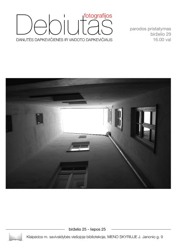Klaipėdos mesto savivaldybės viešosios bibliotekos Meno skyriuje (J. Janonio g. 9) kviečiame į Danutės Dapkevičienės ir Vaidoto Dapkevičiaus parodos pristatymą „Fotografijos debiutas“.