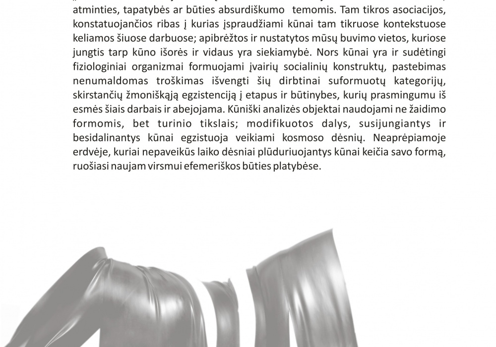 Pasak parodos autorės: „NeBuvimo Meditacijomis“ tęsiami ankstesni ieškojimai žmogaus kūno dekonstravimo, atminties, tapatybės ar būties absurdiškumo temomis. Kūnai būdami savaime sudėtingi fiziologiniai organizmai, formuojami įvairių socialinių konstruktų, nenumaldomai trokšta išvengti dirbtinai suformuotų kategorijų, skirstančių žmogiškąją egzistenciją į etapus ir būtinybes“.