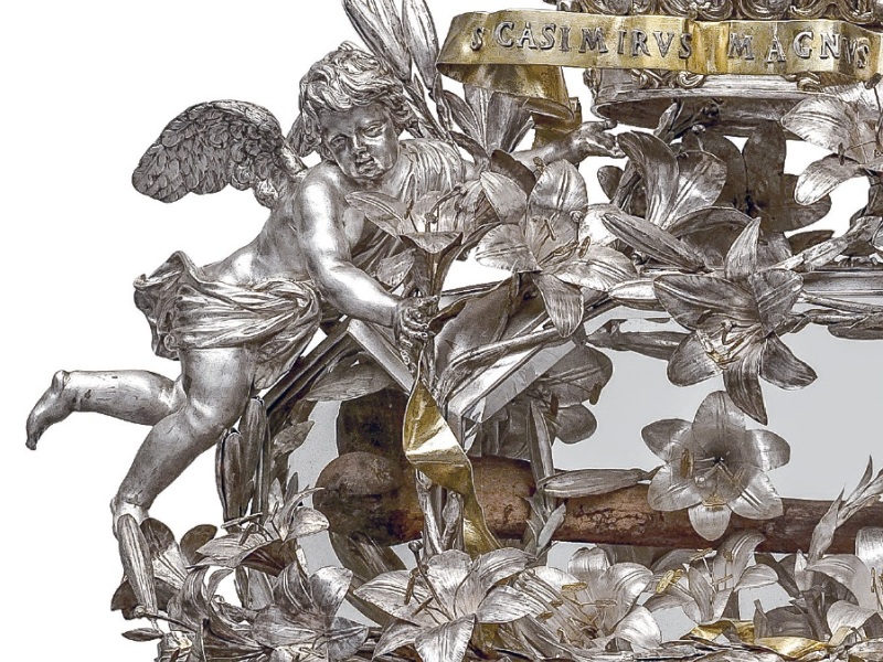 Parodoje šv. Kazimiero gerbimo paminklai pristatomi koncentruojantis į XVII a. vykusias iškilmes Palerme ir aptariant Florencijos Medici pamaldumą šv. Kazimierui. Ekspozicijos centre – 1 mln. eurų suma įkainotas sidabrinis šv. Kazimiero relikvijorius su Lietuvos globėjo relikvija, kurią Toskanos kunigaikštis Kozmas III gavo iš Vilniaus vyskupo Mikalojaus Stepono Paco. Įspūdingų matmenų kūrinio medžiagų brangumas, ikonografija ir auksakalio Massimiliano Soldani Benzi meistriškumas stebino ne vieną italų kartą, o Lietuvoje jis pristatomas pirmą sykį. Taip pat eksponuojamas Šv. Lauryno bazilikos archyve saugomas relikvijos autentiškumą patvirtinantis vysk. Mikalojaus Stepono Paco dokumentas ir šio Vilniaus vyskupo auksinė taurė iš Vilniaus katedros lobyno. Deimantais padabinta šv. Marijos Magdalenos relikvijos brangenybė iš Vilniaus katedros yra šios istorijos dalyvė, gauta iš Kozmo III Medičio, atsidėkojant už šv. Kazimiero relikviją. Taip parodoma relikvijų dovanojimo istorija, aptariami mūsų dienas pasiekę kiti šios istorijos paminklai.