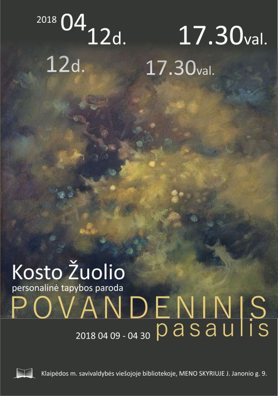 Klaipėdos miesto savivaldybės viešosios bibliotekos Meno skyriuje (J. Janonio g. 9) kviečiame į Kosto Žuolio personalinė tapybos parodos „Povandeninis pasaulis“ pristatymą.