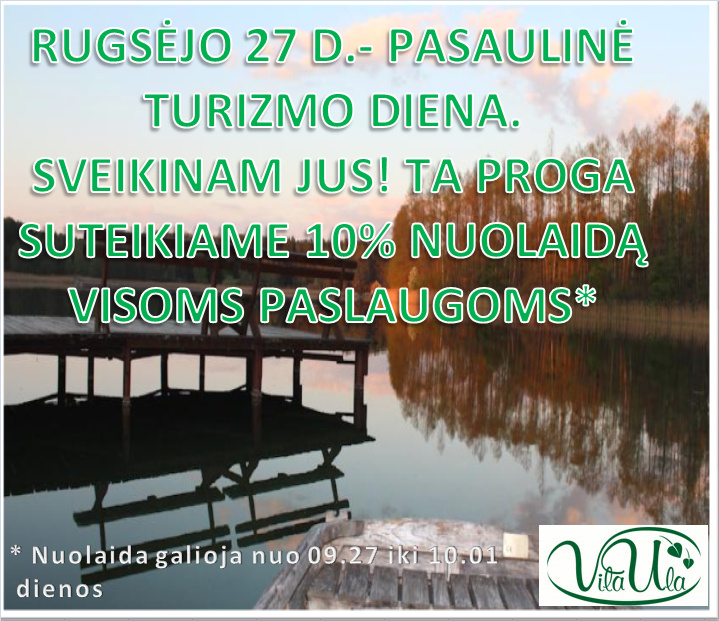 Ar žinojote, kad šį savaitgalį švenčiama PASAULINĖ TURIZMO DIENA? Kurios metu būtina keliauti ir patirti naujų įspūdžių. Vila Ūla laukia Jūsų su puikiu pasiūlymu!