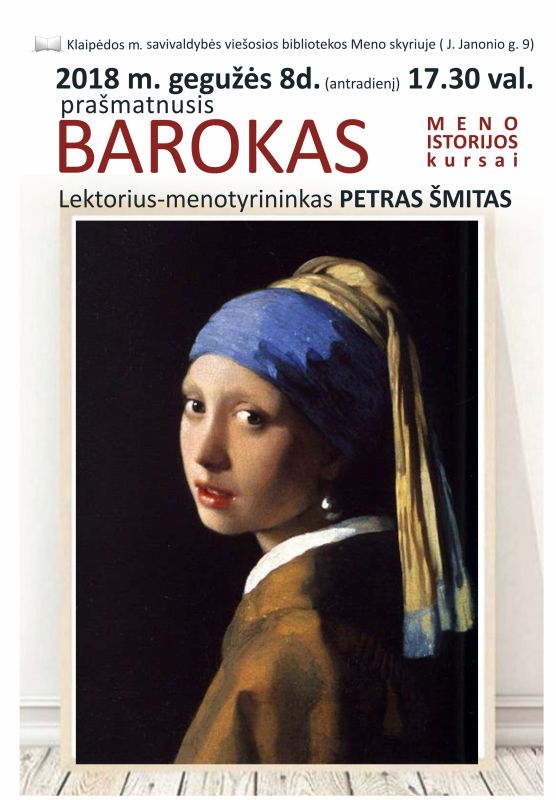 Klaipėdos miesto savivaldybės viešosios bibliotekos Meno skyriuje (J. Janonio g. 9) tęsiant meno istorijos kursus, kviečiame į lektoriaus-menotyrininko Petro Šmito paskaitą „Prašmatnusis barokas“.
