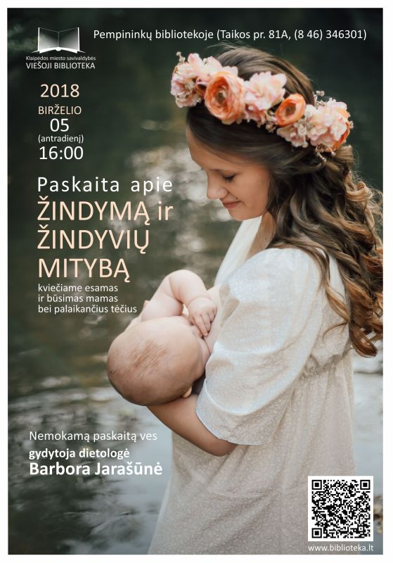 Birželio 5 d. 16.00 val. Klaipėdos miesto savivaldybės viešosios bibliotekos Pempininkų padalinyje (Taikos pr. 81A) vyks paskaita „Žindymas ir sveika žindyvių mityba“.