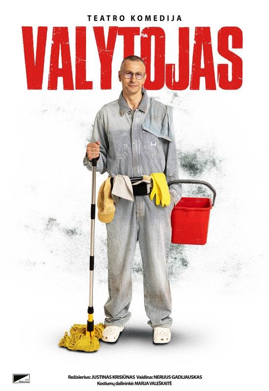 Nerijus Gadliauskas monospektaklyje “Valytojas” apie įsimylėjusį prekybos centro tvarkytoją.