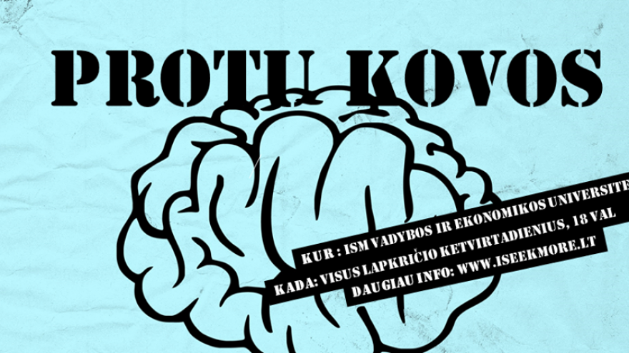 Visus lapkričio ketvirtadienio vakarus nuo 18:00 valandos vyks PROTŲ KOVOS, kuriose galės dalyvauti visi norintys, komandose iki 5 žmonių. Žaidimo metu bus pateikiami klausimai iš įvairių sričių, taip pat klausimai video ir audio formatu.