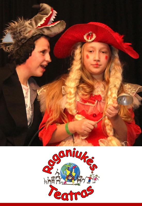 Interaktyvų spektaklį–žaidimą veda Raganiukės teatro aktoriai Linas Barauskas arba Indrė Stonytė.