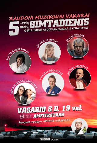 5 -erių metų gimtadienio šventė vyks Šiaulių arenos amfiteatre, o joje net tik išvysime didžiausias „Raudonų muzikinių vakarų“ žvaigždes bei išgirsime geriausius jų kūrinius, bet ir nominuosime įvairiose kategorijose labiausiai pasižymėjusius atlikėjus!