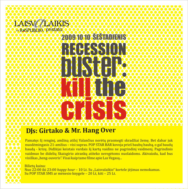 Pamatęs šį renginį, amžiną atilsį Valančius norėtų prasmegti skradžiai žemę. Bet dabar juk nuodėmingasis 21-amžius – visi supras. POP STAR BAR kovoja ne tik už vyrišką vasarą, bet ir prieš baubų baubą, o gal baudų baudą – krizę. Didžėjai keistais vardais šį kartą vaidins ne pagrindinį vaidmenį. Pagrindinis vaidmuo be didelių Skaisgirio atrankų atiteko neregėtoms nuolaidoms. Akivaizdu, kad bus visiškas „heng-ouveris”. Visai kaip tame filme apie Las Vegasą…