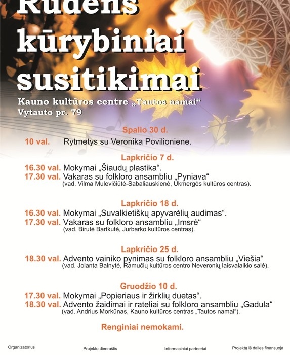 Renginių ciklas „Rudens kūrybiniai susitikimai” Kauno kultūros centre „Tautos namai” (Vytauto pr. 79)