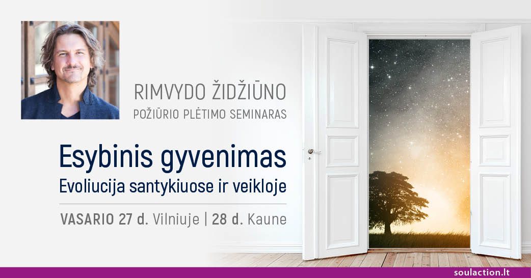 VASARIO 27 D. VILNIUJE Rimvydo Židžiūno požiūrio plėtimo seminaras „ESYBINIS GYVENIMAS. EVOLIUCIJA SANTYKIUOSE IR VEIKLOJE“.