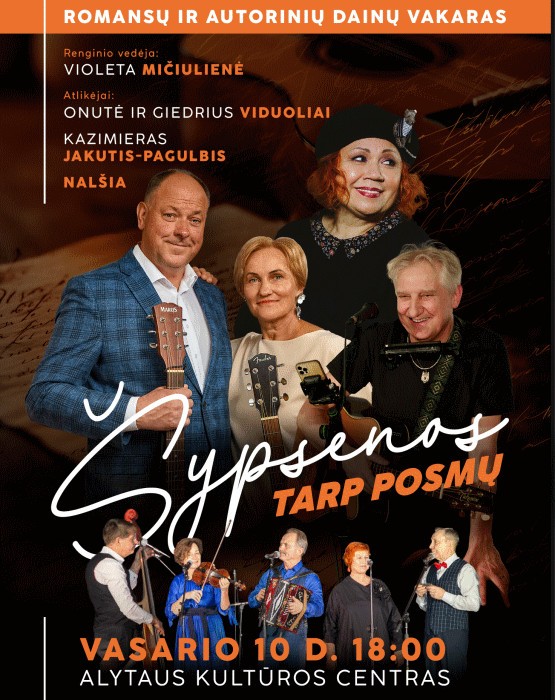 Koncertas vyks vasario 10 d., 18:00, Alytaus kultūros centre. Bilietus platina kultūros centro kasa ir bilietai.lt