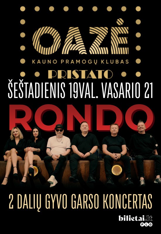 Legendinė Lietuvos pop-rock muzikos grupė RONDO po 2 metų pertraukos sugrįžta į sceną ir kviečia į ypatingą koncertą Kauno OAZĖJE. Tai ne eilinis pasirodymas – tai ilgai lauktas sugrįžimas, kuris pažadins emocijas, nostalgiją ir visą salę pavers vienu choru.