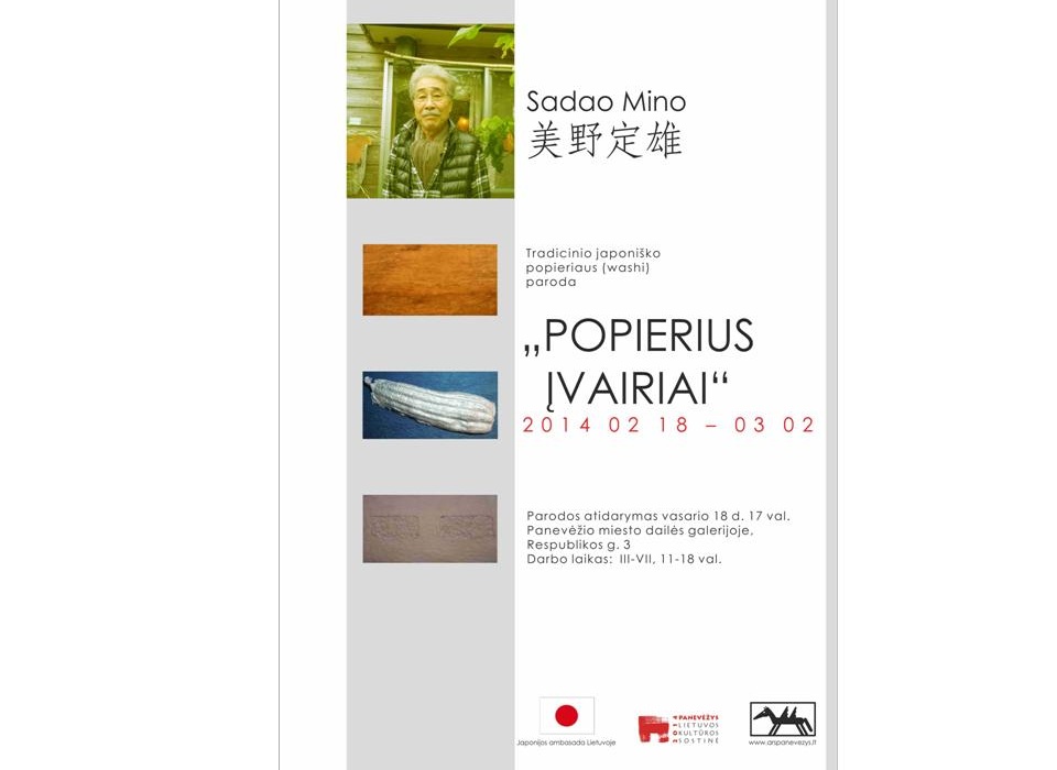 Sadao Mino tradicinio japoniško popieriaus washi darbų paroda „Popierius įvairiai” atspindi Japonijos estetikos subtilumą, daugiau nei pusantro tūkstančio metų senumo popieriaus gamybos patirtį ir supažindina su mažai Lietuvoje pažįstamu tradicinio japoniško rankų darbo popieriaus menu.