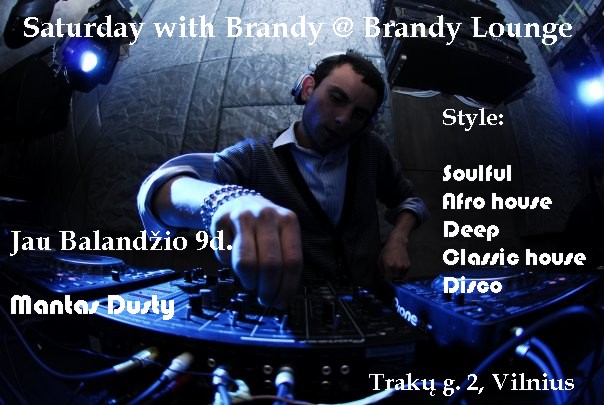 Vieta: Kavinė – baras Brandy Lounge, Trakų g. 2, Vilnius Laikas: Balandžio 8d. 22:00 – Balandžio 9d. 05:00 Įėjimas nemokamas Šį šeštadienį mėgaukimės brendžio taure ir fantastiška muzika Brandy Lounge bare. Brendis puikiai tiks su kava, arbata ar šokoladu. Pašildykite brendžio taurę, apimant delnu, užsimerkite, suskaičiuokite iki 100, pajuskite nepakartojamą aromatą, padarykite gurkšnį, mėgaukitės.. Pasinerti į ekstazę padės ir Dj Mantas Dusty, kuris užburs Jus: – Soulful – Afro house – Deep – Classic house – Disco muzikos ritmais. Tad būkite Brandy Lounge bare, kuriame visą naktį Jums bus dovanojamos tik teigiamos emocijos. Tapk mūsų draugu: http://www.facebook.com/profile.php?id=100001253125693