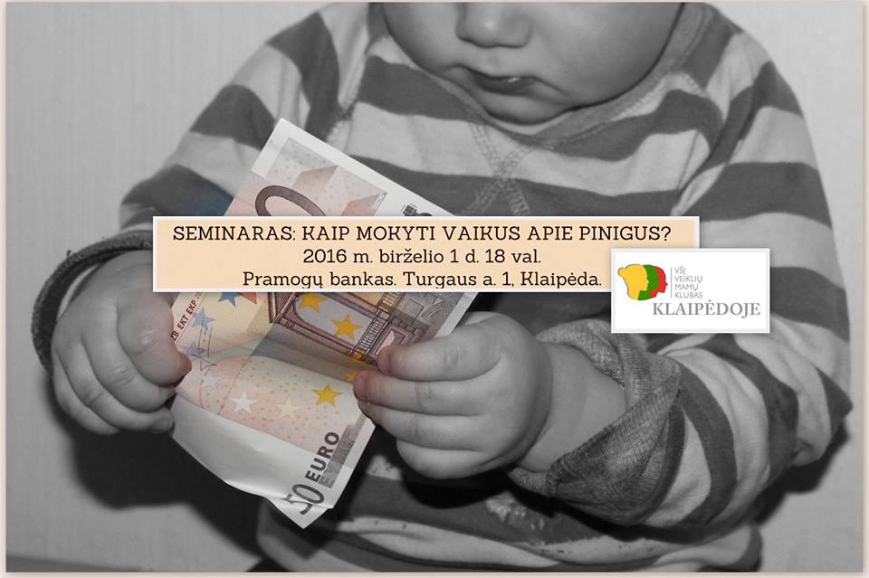 VŠĮ VEIKLIŲ MAMŲ KLUBAS Klaipėdoje š.m. birželio 1 d. 18 val. kviečia tėvelius, esamus ir dar tik planuojančius turėti vaikų, į seminarą “KAIP MOKYTI VAIKUS APIE PINIGUS”. Seminarą veda Vytautas Šulcas ( http://www.exoro.lt/LT/Page/Exoro-komanda/Biografija/Vytautas-Sulcas)