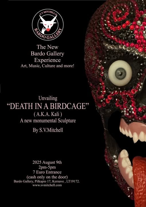Šiais metais švenčiame 11-ąsias BARDO gyvavimo „Bardo” galerijoje metines. Ta proga rugpjūčio 9 d. 14.00-17.00 lauksime lankytojų, kad pristatytume mano kelerių metų apmąstymų ir darbo rezultatą – skulptūrą MIRTIS PAUKŠČIO NARVE, dar žinomą kaip KALI.