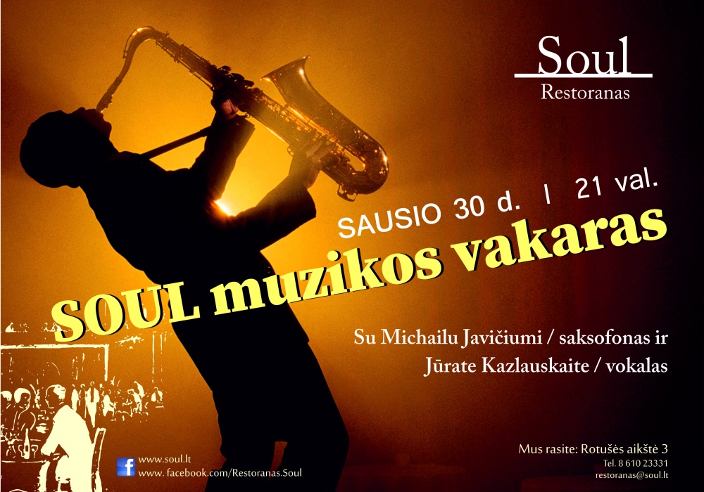 Soul restoranas kviečia į jaukų ir šiltą Soul muzikos vakarą.