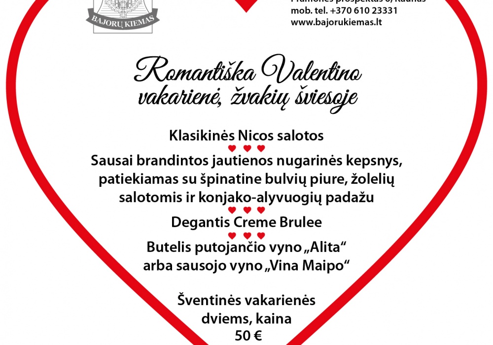 Specialus pasiūlymas Valentino dienos vakarienei