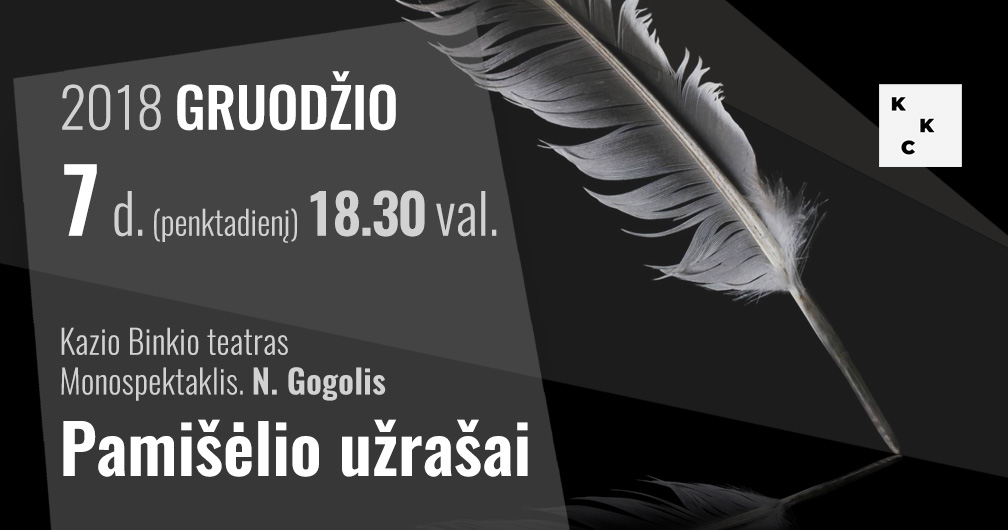 Gruodžio 7 dieną 18.30 Kauno kultūros centre Kazio Binkio teatro spektaklis „Pamišėlio užrašai”.