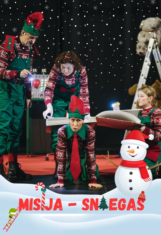 Spektaklis „Misija – sniegas“ stebina dinamiška režisūra, netikėtais sceniniais sprendimais, gyvu humoru ir šiuolaikišku požiūriu į Kalėdinę pasaką.