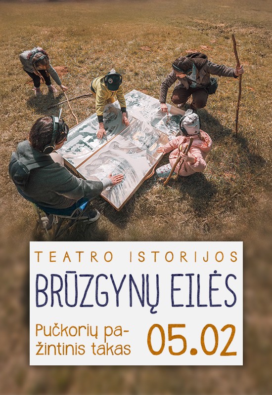 Interaktyvus spektaklis-žygis visai šeimai kviečia žiūrovus paklajoti Pučkorių pažintinio tako keliais ir brūzgynais. Garsinės kelionės metu brūzgynautojams skambės gražiausios lietuvių poetų eilės apie šalies kraštovaizdžio grožį ir jo išmonės pilnus herojus. Užsidėję poeto akinius ir miško radijo imtuvus, žiūrovai patirs kraštovaizdžio margumyną ir poeziją, slypinčią gamtos pasaulio fragmentuose.
