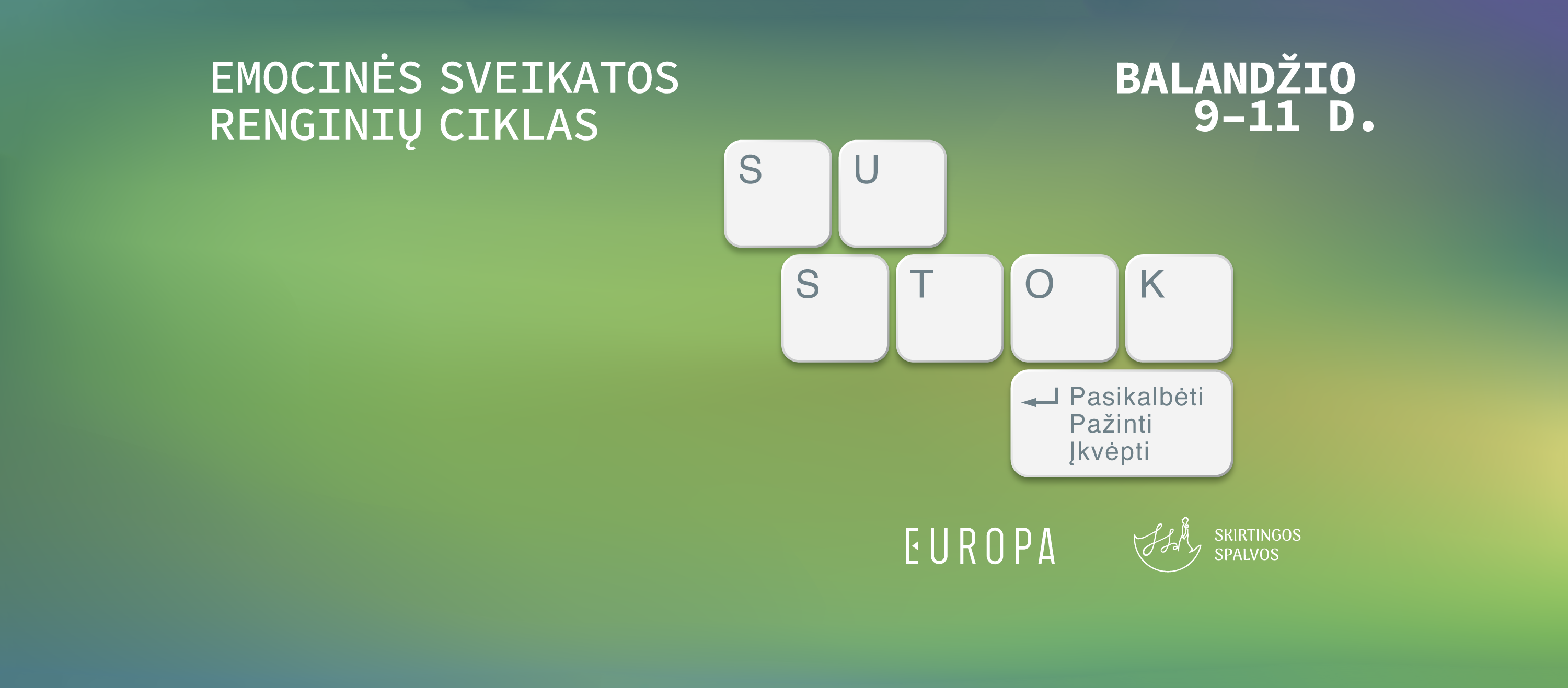 Šiame greitai besisukančiame pasaulyje turime ieškoti ramybės stotelės, kurioje galėtume pasikalbėti, pažinti ir įkvėpti. Būtent todėl balandžio 9–11 d. PC „Europa“ ir socialinės iniciatyvos „Skirtingos Spalvos“ organizuojamas renginių ciklas apie emocinę sveikatą „Sustok pasikalbėti, pažinti ir įkvėpti“ kvies miestiečius sustoti.