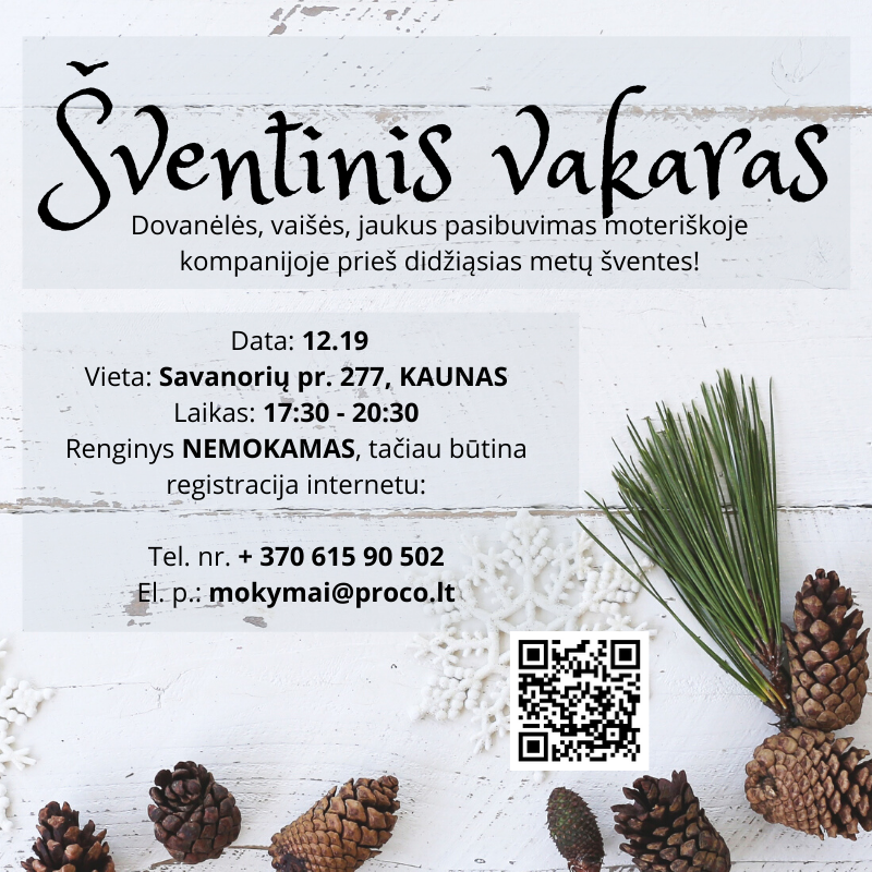 Nepraleisk progos išgirsti daug naudingų patarimų, pasivaišinti kalėdiniais skanėstais, sužaisti įtraukiantį žaidimą ir laimėti prizus bei smagiai pasibūti prieš artėjančias didžiausias metų šventes!