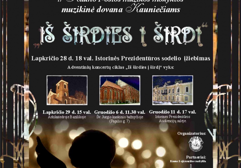 Lapkričio 28 d. Kaunas pasiners į Šv. Kalėdų laukimo nuotaiką. Šventiniai senamiesčio renginiai prasidės Istorinės Prezidentūros sodelyje, kur 18 val. susirinkusius miestiečius ir svečius pasveikins bevardis angelas Prezidentas bei Kauno 1-osios muzikos mokyklos jaunieji talentai.
