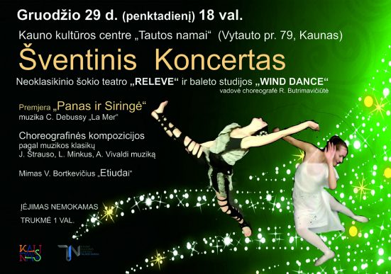 Neoklasikinio šokio teatro „Releve“ ir baleto studijos „Wind Dance“ premjera „Panas ir Siringė“ bei choreografinės miniatiūros.