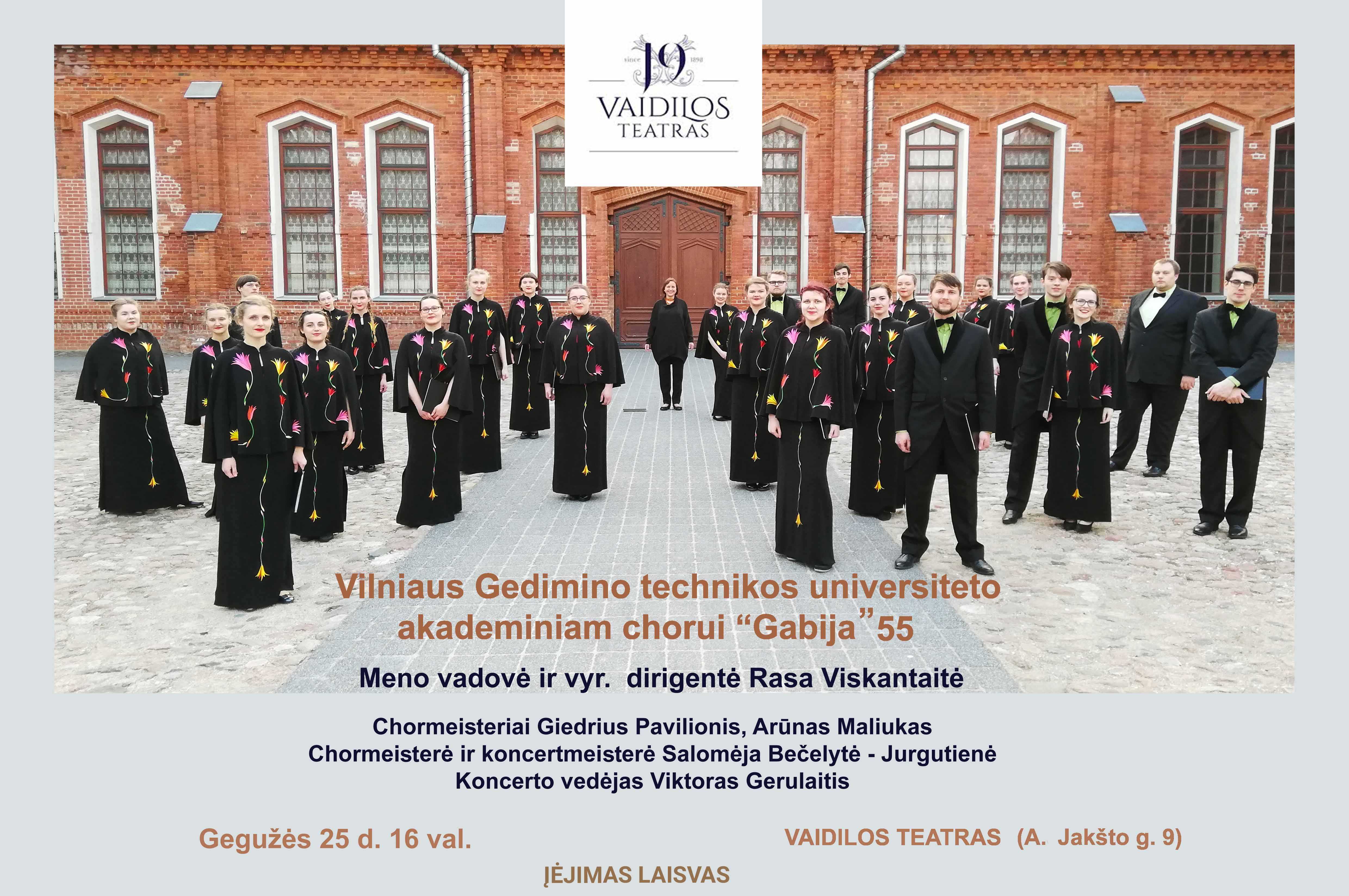 Vilniaus Gedimino technikos universiteto (VGTU) akademinis choras „GABIJA“ (vadovė Rasa Viskantaitė) švenčia savo 55-metį ir ta proga rengia šventinį koncertą, kuriame dalyvaus VGTU akademinis choras „Gabija“ bei absolventai. Koncerto vedėjas – muzikologas Viktoras Gerulaitis. Šventinis koncertas vyks gegužės 25 d. 16.00 val. Vaidilos teatre (A. Jakšto g. 9). Koncerte skambės kūriniai, kuriems diriguos Giedrius Pavilionis, Salomėja Bečelytė – Jurgutienė, Arūnas Maliukas, tai pat prisidės įvairių kartų choristai, kurie leis pajusti choro grožį bei jėgą! Labai visų lauksime.