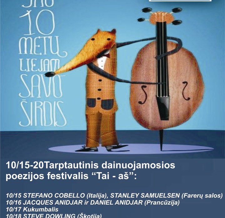10/15-20Tarptautinis dainuojamosios poezijos festivalis “Tai – aš” gyvos muzikos klube AULA Blues club:
