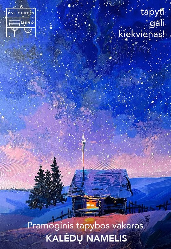 Pasitikite šventes kūrybiškai! Kviečiame praleisti vakarą pramoginėje tapybos studijoje. Čia atsipalaiduosite po darbo dienos, pabendrausite su draugais ar naujais pažįstamais, pasilinksminsite, o gal pabūsite su savo mintimis. Nesvarbu, koks jūsų tikslas, – mūsų studijoje tapyti gali kiekvienas! Renginio pabaigoje kiekvienas išsinešite paveikslą, kuris taps puikia dovana ar šventine dekoracijų jūsų namams.