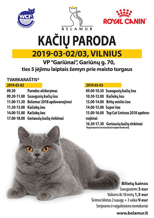 Asociacija “Belamuro katės” organizuoja WCF Tarptautinę kačių parodą ir kviečia visus vilniečius ir miesto svečius pasigrožėti ir iš arčiau susipažinti su skirtingomis kačių veislėmis.