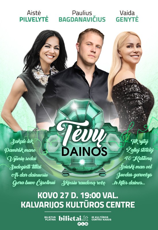 Trys nuostabūs balsai – Vaida Genytė, Aistė Pilvelytė ir Paulius Bagdanavičius – pristato koncertinę programą „Tėvų dainos“.