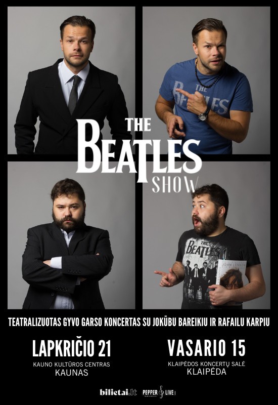 Nepamirštamas muzikinis vakaras su „The Beatles“ muzika! Ar esate pasiruošę kelionei į bitlomanijos epicentrą? Operos grandas, vaikščiojanti „The Beatles“ enciklopedija Rafailas Karpis, ir aktorius, „užkietėjęs“ grupės fanas Jokūbas Bareikis kartu su gyvo garso grupe kviečia į unikalų, teatralizuotą koncertą „The Beatles Show“!