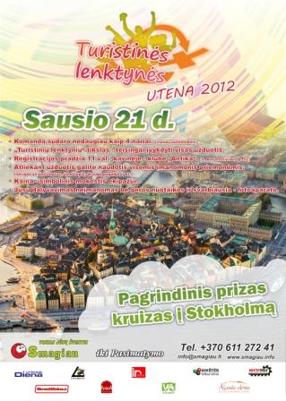 „TURISTINĖS LENKTYNĖS“ Dėmėsio iššūkių, naujovių ir adrenalino išsiilgę žmonės !!! “TURISTINĖS LENKTYNĖS” vėl Utenoje. JAU SAUSIO 21 DIENĄ STARTUOJAME UTENOJE !!! Kyla klausimas, kas tai yra? Kur vyks? Kaip vyks? Kokios taisyklės? Kur startas? Kiek kainuos? Ar bus apdovanojimai? Ar bus afterparty? Viskas nuo pradžių: Tai aktyviems žmonėms skirtas renginys. Renginio tikslas – puikiai praleistas laikas, nuotaikingas bei smagus pasivažinėjimas, o gal net lenktyniavimas proto ribose po Utena, susipažinimas su lankomiausiomis ir įdomiausiomis vietomis, įvairių užduočių atlikimas, tam tikrų vietų suradimas, mįslių įspėjimas ir kt. Komanda – automobilis, ją gali sudaryti 1-4 asmenys, tad Jūsų pasirinkimas, keli žmogeliukai būsit. Startą pradėsime 12h Kavinėje Antika Maršrutams ir užduočių atlikimui galima bus naudotis įvairiomis priemonėmis: žemėlapiai, navigacija, internetas, telefonas, draugų pagalba, kt. Kaina – simbolinis mokestis automobiliui. Privaloma turėti: gerą nuotaiką, fotoaparatą (reikės fotografuoti). Svarbiausias renginio aspektas – saugumas kelyje. Greitis nėra pagrindinis rodiklis. Dėmesys bus į užduočių atlikimą, koordinačių, nuorodų suradimą, staigmenų paragavimą, kūrybiškumo įjungimą ir kitus veiksnius. Bus ir Bonus taškų. Finišas – įvertinamas Jūsų dienos darbas. Po lenktynių Jūsų laukia: apdovanojimai, vakaro programa, diskoteka su Dj , kuris nuostabius ritmus suks ir visus išjudins šokių aikštelėje. Iki susitikimo ! Laukiame Tavęs ir Tavo draugų!