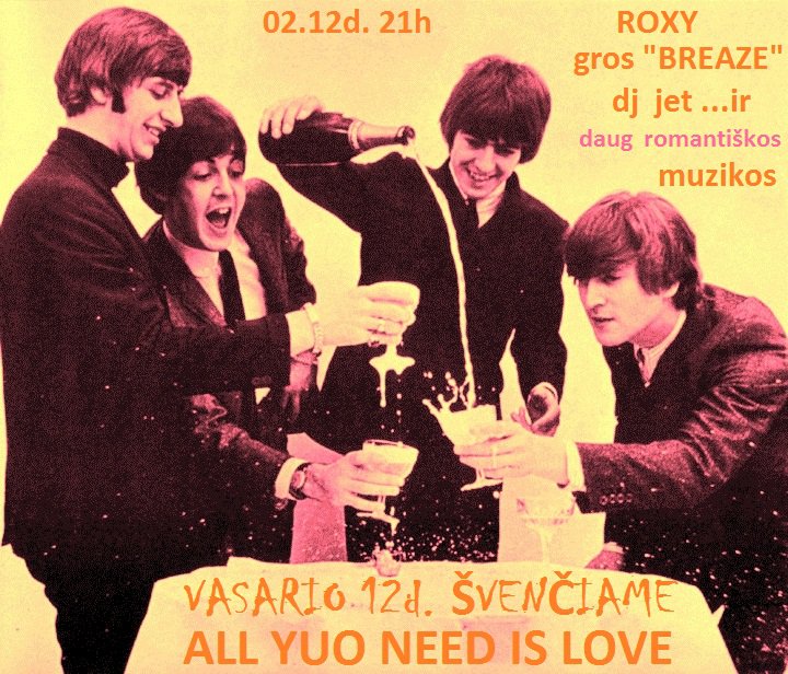 Šį šeštadienį ROXY klube VALENTINO dienos fiesta Rock’N’roll ritmu! “Bitliška” energija ir aistringiausiomis roko baladėmis persmelktas vakaras su visada įsimylėjusia grupe “Breaze”!