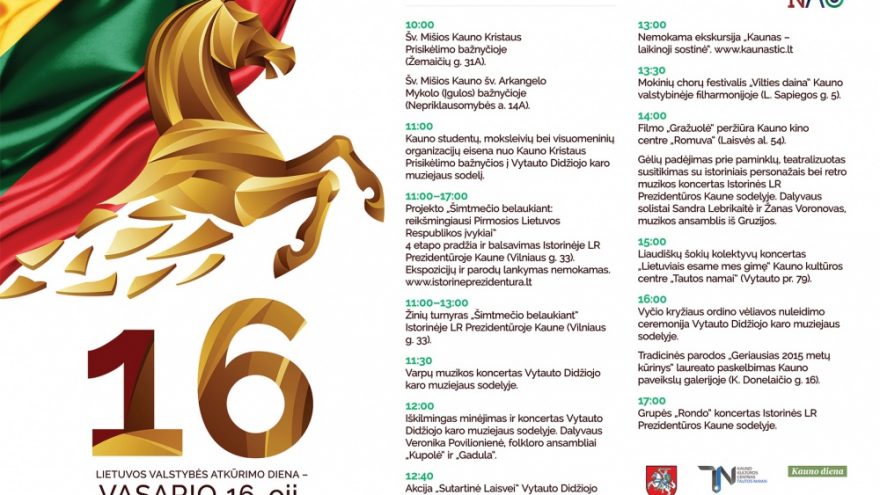 LIETUVOS VALSTYBĖS ATKŪRIMO DIENOS – VASARIO 16-OSIOS – RENGINIAI KAUNE