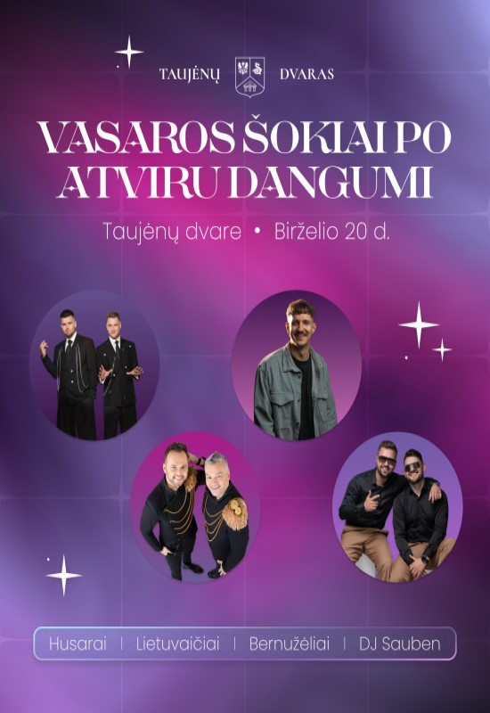 Taujėnų dvaras kviečia į tikrą vasaros vakarą po žvaigždėmis! Laukia gyva muzika, šokiai iki vidurnakčio ir gera nuotaika viename gražiausių dvarų Lietuvoje. Pasiruoškite patogius batus – sėdėti tikrai nesinorės!