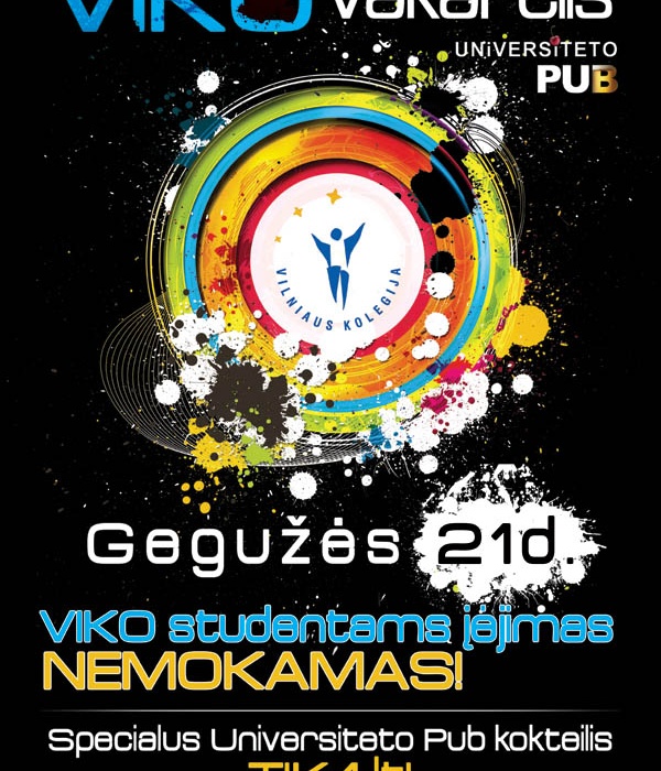 Jau gegužės 21d. Vilniaus kolegijos vakarėlis! Taigi, Viko studente, nesnausk ir nepraleisk progos tinkamai atsipalaiduoti prieš sesijos vargus, nes tik Tau gegužės 21d. įėjimas į Universiteto Pub`ą bus NEMOKAMAS, o specialų kokteilį gausi tik už VIENĄ LITĄ!