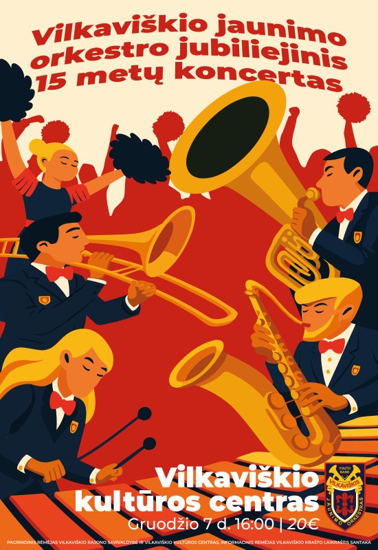 Gruodžio 7 d., 16:00 val. kviečiame visus į jubiliejinį koncertą Vilkaviškio kultūros centre, kuriame netrūks muzikinių staigmenų, įkvepiančių akimirkų ir nuoširdžių prisiminimų kartu su orkestro draugais.