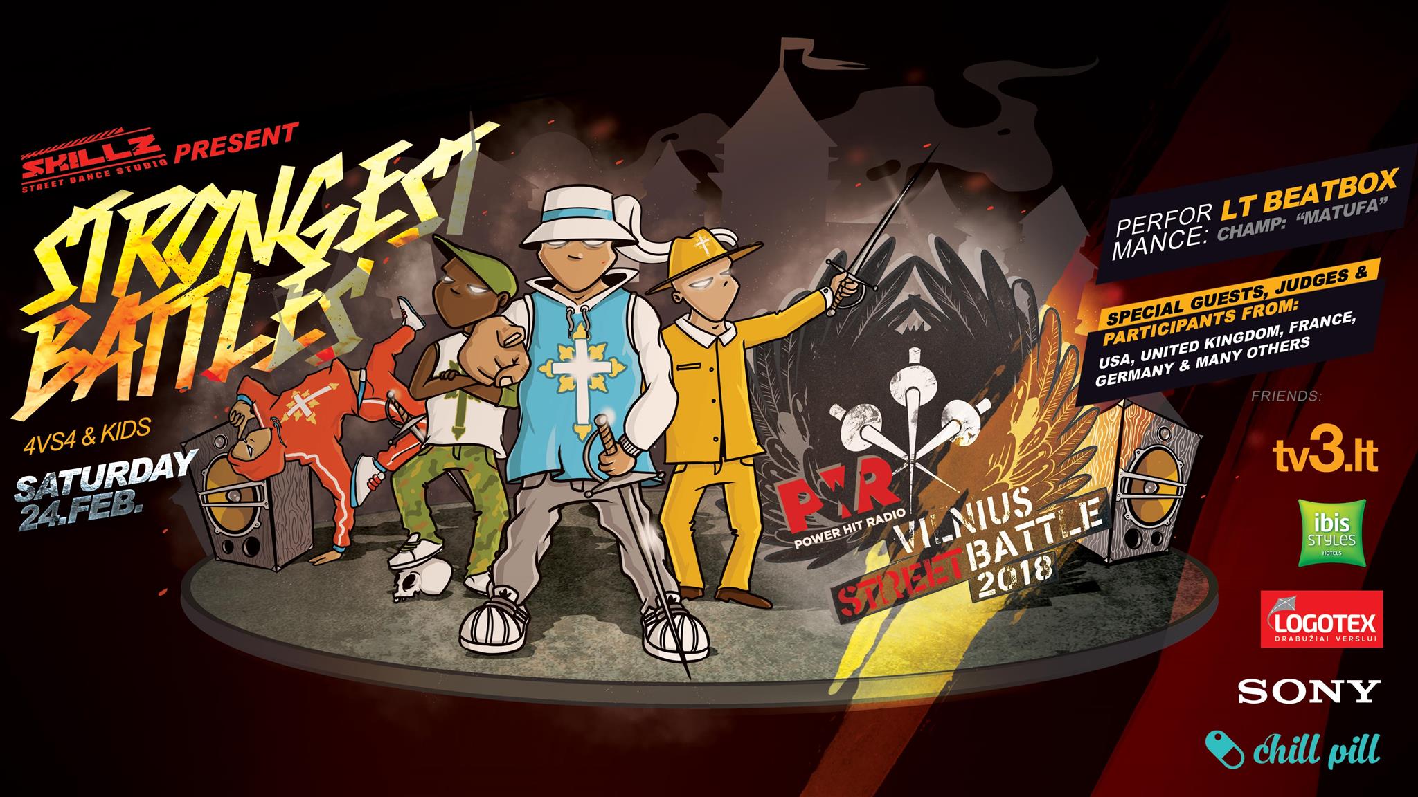 Vilnius Street Battle tai didžiausias kasmetinis gatvės šokių turnyras Lietuvoje šiemet vyksiantis Vasario 24d. Menų fabrike LOFTAS (Švitrigailos g. 29, Vilnius). Šiame turnyre pamatysite, kaip vyksta tikros nesurežisuotos gatvės šokių kovos, kuriose šokėjai iš daugiau nei 20 pasaulio šalių kovoja 4prieš4, gyvai pamatysite net 4 pasaulines gatvės šokių legendas – teisėjus, kurie visuomet parodo ir savo solo išėjimus, išgirsite daug geros įvairių stilių muzikos. Vilnius Street Battle visuomet išlieka fresh ir siūlo naujoves, šiemet tai visiškai naujas renginio konceptas.