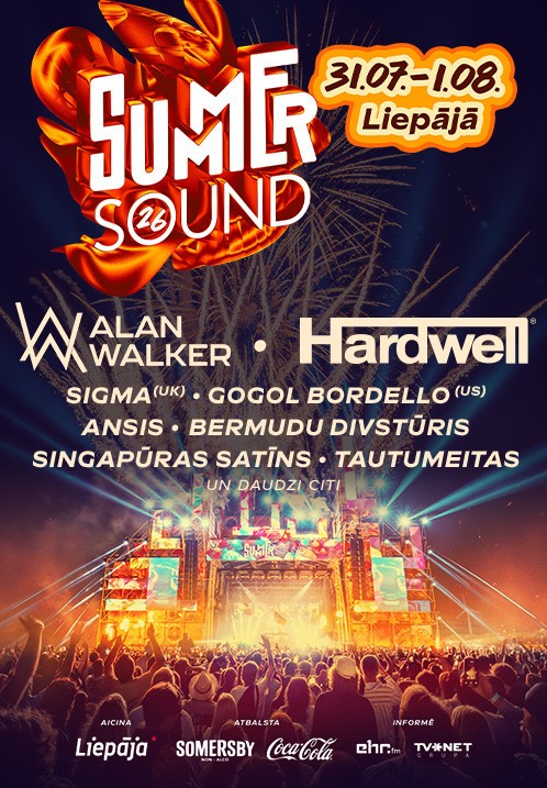 The “Summer Sound 2026” program has currently announced the multi-platinum certified Norwegian DJ and producer ALAN WALKER, the top DJ talent from the Netherlands – HARDWELL, the British drum’n’bass duo SIGMA, the American punk rock band GOGOL BORDELLO, and well-known and much-loved Latvian musicians such as ansis, Bermudu Divstūris, Singapūras Satīns, Eurovision stars Tautumeitas, and many others.