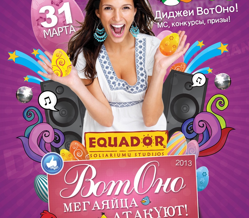 Tada važiuojam… Ponai ir ponios! Kovo 31 dieną linksmiausi rusiški vakarėliai “VotOno” kviečia jus į “super-mega” linksmą, velykų vakarėlį “Votono – Megakiaušai atakuoja!” Nepraleiskite, nes visą šią naktį skambės patys linksmiausi ir šviežiausi rusiškos šokių muzikos hitai, kuriuos jums ruošia amžinai jauna “VotOno” komanda.