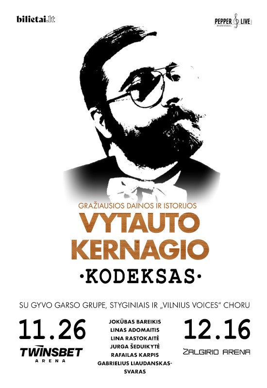 Gražiausios maestro Vytauto Kernagio dainos sugrįžta į arenas – du įspūdingi koncertai Vilniaus „Twinsbet” ir Kauno „Žalgirio” arenose šių metų lapkritį ir gruodį.