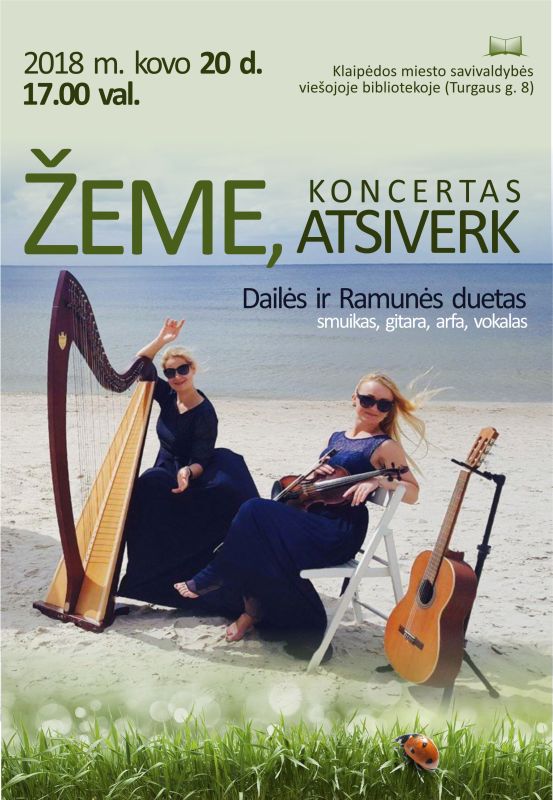 Klaipėdos miesto savivaldybės viešojoje bibliotekoje (Turgaus g. 8) skambės arfos, smuiko ir gitaros garsai, lydimi vokalo – koncertuos duetas „Blooming vibes”.