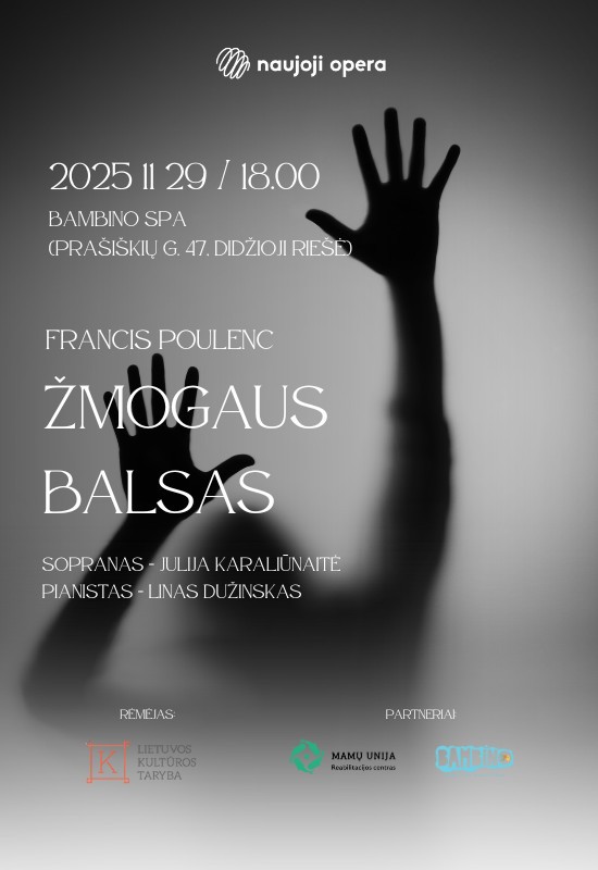 Vienas balsas. Vienas telefonas. Viena moteris, palikta su savo skausmu. Francis Poulenc „Žmogaus balsas” – tai emocionali, intymi mono opera, parašyta pagal Jeano Cocteau monodramą. Pagrindinė veikėja – moteris, paskutinį kartą telefonu kalbanti su ją palikusiu mylimuoju. Visa opera – tai vieno balso vidinė kelionė per meilę, netektį, neviltį ir susitaikymą. Ji kalba, klauso, laukia atsako – bet galų gale lieka viena. Vilnius VOX festivalio metu ši opera įgaus naują dimensiją – ji bus atliekama baseine, kur solistė visą pasirodymo laiką atliks partiją būdama vandenyje. Vanduo čia tampa simboline emocijų erdve – jame slypi trapumas, svyravimai, pasinėrimas į giliausius vidinius klodus. Vanduo sugeria žodžius, išskaido garsą, o kartu – gydo. Projektas įgyvendinamas bendradarbiaujant su Mamų unijos reabilitacijos centru, kur menas tampa daugiau nei estetika – jis tampa terapija. Ši opera – tai jautrus priminimas, kad menas gali gydyti: prikelti, nuraminti, leisti išbūti net ir pačius sunkiausius jausmus. „Žmogaus balsas” baseine – tai ne tik operos patirtis, bet ir tylus solidarumo gestas visiems, kurie šiuo metu plaukia per savo vidinių audrų vandenis.