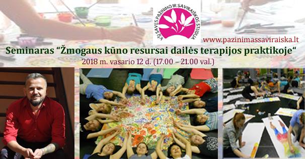 Į kūno pojūčius orientuotas dailės terapijos seminaras „ŽMOGAUS KŪNO RESURSAI DAILĖS TERAPIJOS PRAKTIKOJE“ su dailės terapeutu iš Minsko – Igoriu Iljukevičiumi (Игорь Ильюкевич, Minsk) skirtas psichologams, psichoterapeutams, meno terapeutams, menininkams, pedagogams, socialiniams darbuotojams bei visų šių sričių studentams. Taip pat seminare laukiami visi, kuriems yra įdomu susipažinti su į kūną orientuota dailės terapija, kuriems patrauklus kūrybinės išraiškos vaidmuo šiuolaikiniame pasaulyje bei žmogaus kūno galimybės ir resursai.
