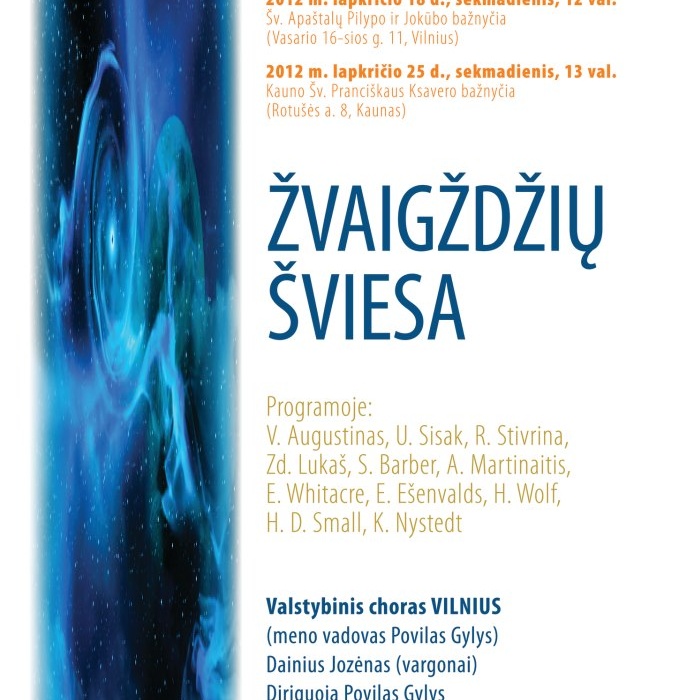 Jau šį sekmadienį, lapkričio 25 d. 13:00 Kauno Šv. Pranciškaus Ksavero (Jėzuitų) bažnyčioje (Rotušės a. 8, Kaunas) choras „Vilnius” ir meno vadovas bei vyr. dirigentas, profesorius Povilas Gylys Kauno publikai padovanos naujausią savo programą “Žvaigdžių šviesa”.