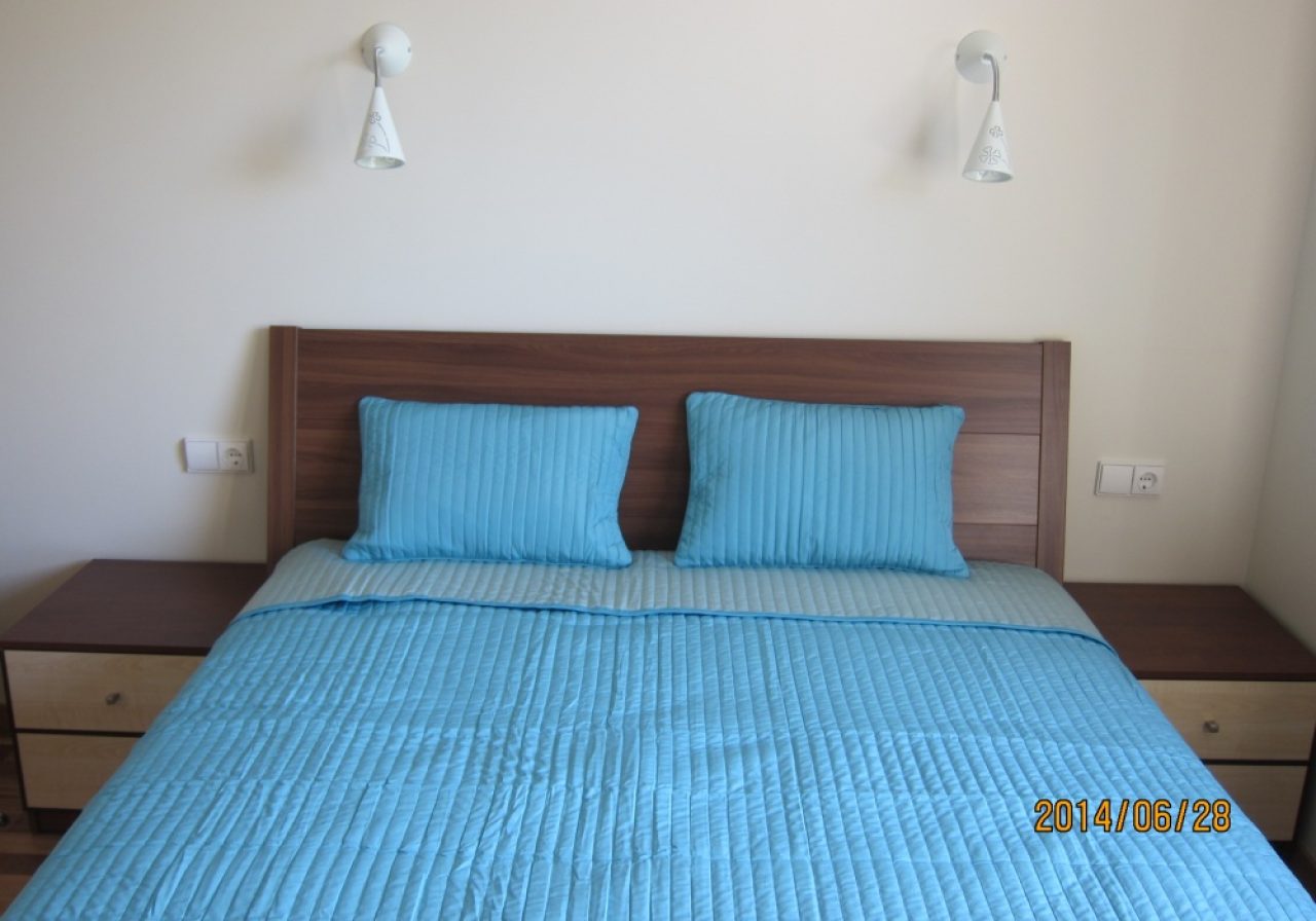 Bute yra du miegamieji, virtuvė, sujungta su svetaine, ir vonios/tualeto kambarys.Viename kambaryje yra dvigulė lova, , kitame – dvi viengulės lovos, svetainėje – didelė išskleidžiama kampinė sofa-lova, LED televizorius erdvus pietų stalas. Bute įrengta didelė virtuvė su visa reikalinga buitine technika (orkaitė, indaplovė, šaldytuvas, mikrobangų krosnelė). Jūsų patogumui: švari patalynė bei rankšluoščiai, virtuvės indai bei stalo įrankiai,lygintuvas, lyginimo lenta, elektrinis virdulys, fenas.